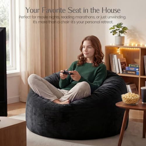 4FT Bean Bag Chair for Adults/Kids, Large Bean Bag with Filling, Memory Foam Bean Bags with Ultra Soft Washable Velvet Cover, Plush Sofa for Living Room, Bedroom and Gaming Room -4 Foot, Black