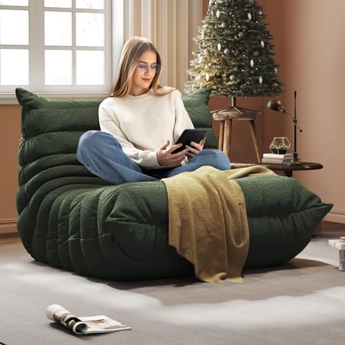 Bean Bag Chair, Fireside Chair, Large Bean Bag Chair for Adults, Bean Bag Chairs for Teens with High-Resilience Foam, Non-Slip Base Floor Lounge Sofa,Living Room (Green, Single)
