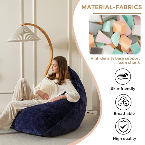 【Perfect Living Room Accessories】: The base of the bean bag chairs is made of non-slip particles fits very well with the floo. The fluffy beanbag chairs are simple and generous in appearance and can be integrated into various home decor styles. Bring you a relaxing and comfortable experience while decorating your home.