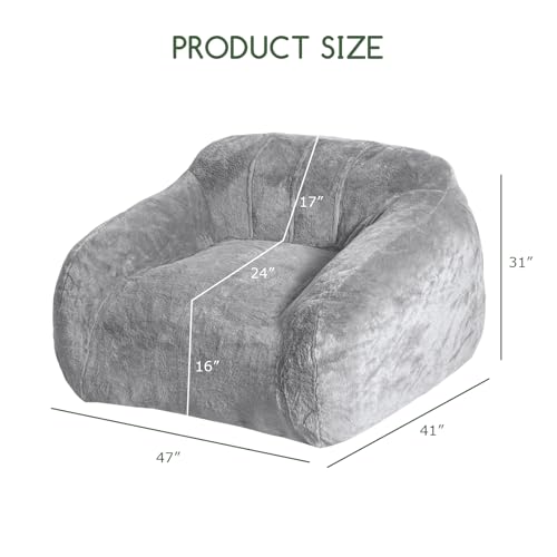 Large and Comfortable – The HIGOGOGO bean bag chair measures 47″x41″x30″ and is large enough to accommodate both adults and children. The chair is made with faux fur fabric, memory foam, and high elasticity cotton to provide great comfort and support