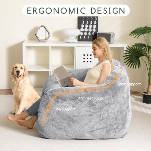 HIGOGOGO Giant Bean Bag Chair for Adults, Big Comfy Sofa Chair for Bedroom Living Room, Bean Bag Lazy Chair for Adults with Armrests for Gaming, Reading, Silver Grey