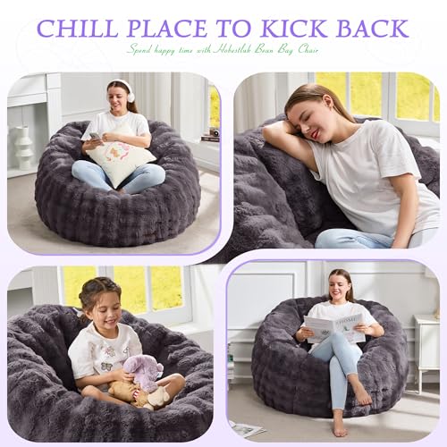 Hobestluk Bean Bag Chair Oversized Bean Bag Chair for Adults Donut-Shaped Large Bean Bag with Spacious Design for Living Room Bedroom or Reading Nook (Bubble Dark Grey)