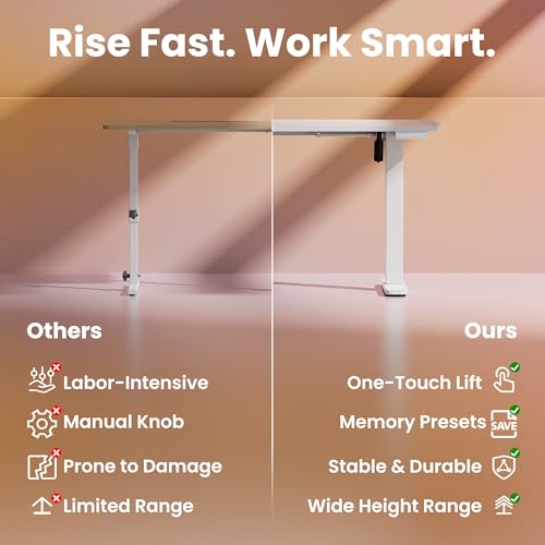 Built for Durability: Constructed with high-quality steel, this standing desk offers exceptional stability and durability. The two-piece spliced desktop features rounded corners for added safety and a modern, sturdy design. Rigorously tested to withstand 50,000 lift cycles at full capacity, it delivers long-lasting performance.