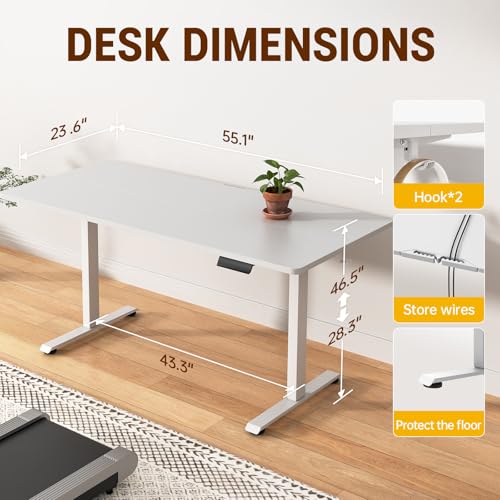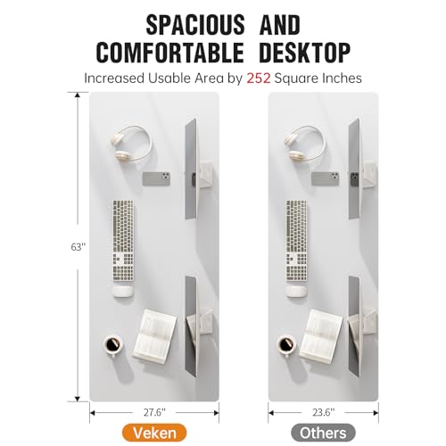 Veken 63×27.6 Inch Large Electric Standing Desk, Heights Adjustable,Sit to Stand Up, Work Home Office Computer Table for Walking Pad, Gifts for Dad, Wooden Desktop Desks, White