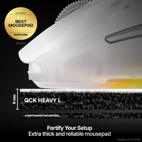 SteelSeries QcK Heavy Gaming Mousepad — Thicker, Non-Slip Silicone Rubber Base, Peak Tracking, Optimized for Gaming FPS, MOBAs, RTS, MMO — Large Size 450 mm x 400 mm x 6 mm — White