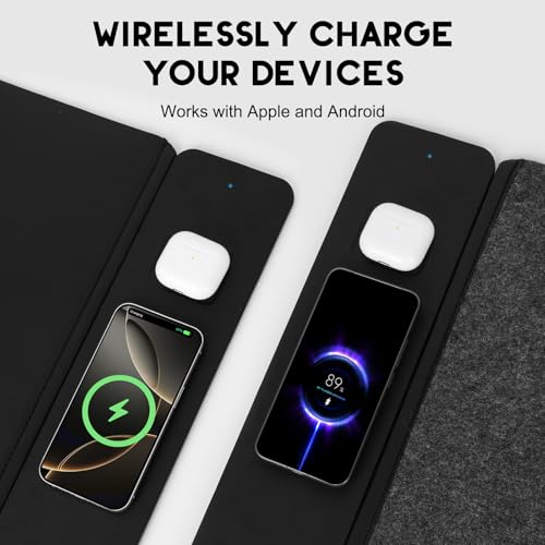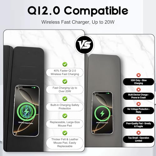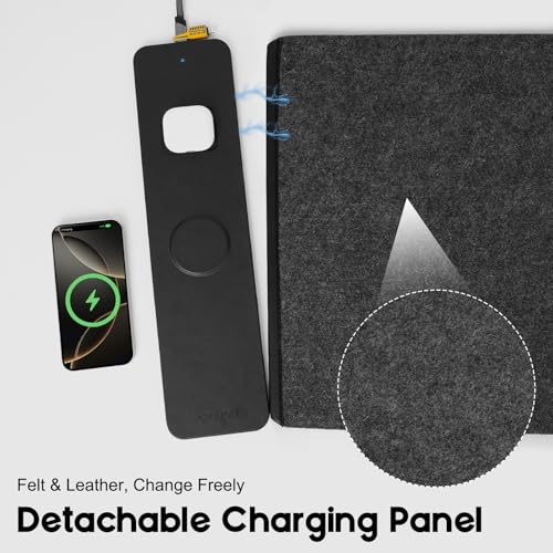 Wireless Charging Mouse Pad, QI2 Compatible Dual Fast Charger, Replaceable Felt & Leather Desk Mat, for Office & Gaming, Large Surface, iPhone & Android Compatible (Felt)
