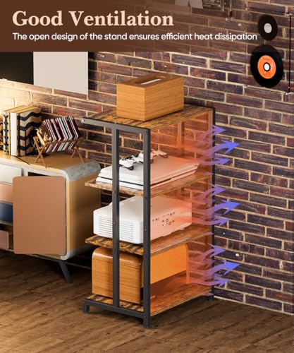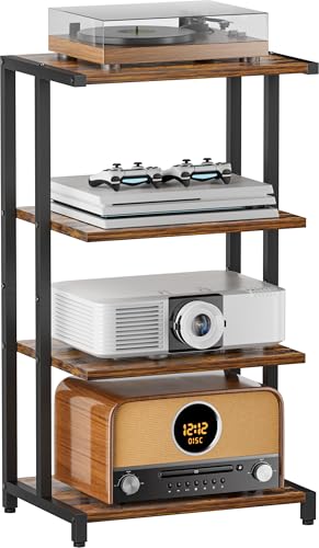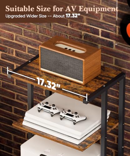 Upgraded Wider Design: With its generous dimensions of 17.32″ W x 30″ H x 12.99″ D, this wooden 4-tier media stand provides ample space for all your AV equipment. Whether used as a media center in your home theater, a stylish organizer in your office, or a convenient stand in your living room or bedroom, the media storage shelf delivers both function and style.