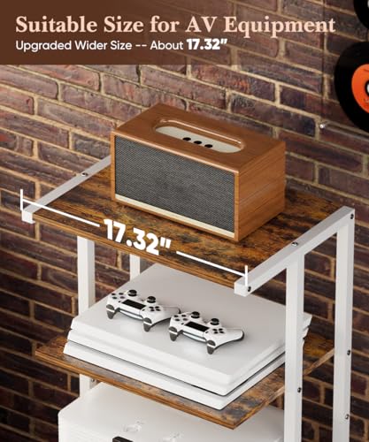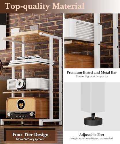 Upgraded Wider Design: With its generous dimensions of 17.32″ W x 30″ H x 12.99″ D, this wooden 4-tier media stand provides ample space for all your AV equipment. Whether used as a media center in your home theater, a stylish organizer in your office, or a convenient stand in your living room or bedroom, the media storage shelf delivers both function and style.