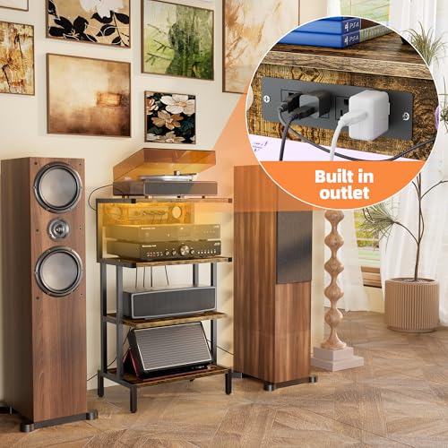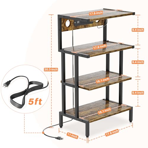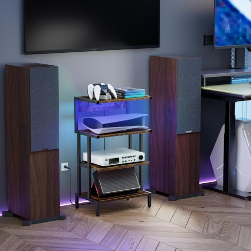 Aquzee Video Game Console Shelf, Stereo Racks – Media Stand with Outlet & Led Strip Light, 4-Tier Gaming Shelf for PS4 PS5 Xbox Games Organizer, Small Entertainment Center, AV Media Stand for CD DVD
