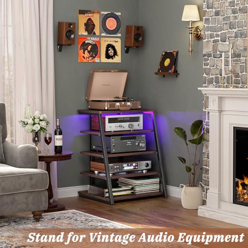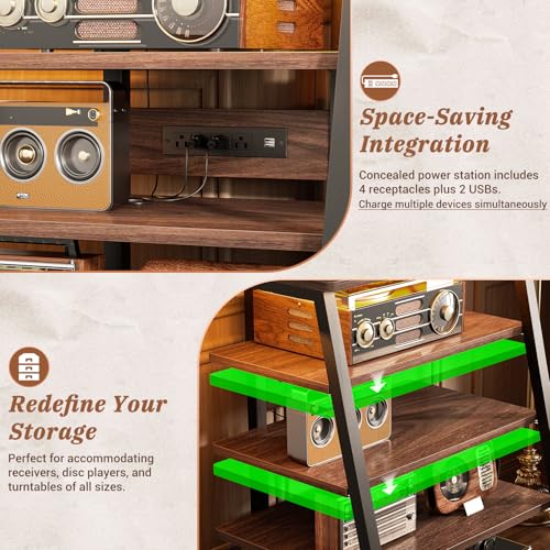 Armocity 5-Tier AV Media Stand with Power Strips, Media Console with LED Lights, Audio Tower Rack with Adjustable Shelves, Stereo Stands and Racks, 40.8”, Black Walnut