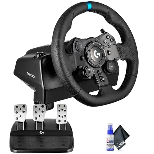 Logitech G923 Racing Wheel and Pedals, TRUEFORCE up to 1000 Hz Force Feedback, Gaming Steering Wheel PS5, PS4, PC, Mac, Genuine Leather- Black