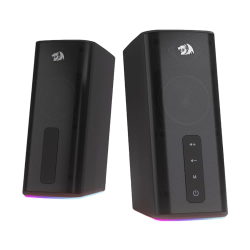 Redragon GS510 RGB Desktop Speakers, 2.0 Channel PC Computer Speaker with 4 Colorful LED Backlight Modes, Enhanced Bass and Easy-Access Volume Control, USB Powered w/ 3.5mm Cable