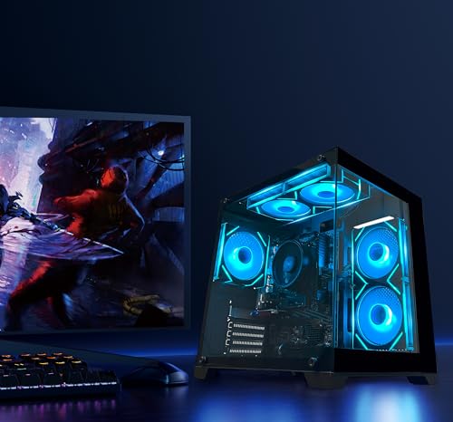 Gaming PC Desktop Computer AMD Ryzen 5 5600GT,16GB DDR4 3200MHz,1TB M.2 NVMe PCle4.0 Gen4,550W 80PLUS PSU,WiFi,Game Design Office Console,Sea View Room, Towers Prebuilt PC (Black)