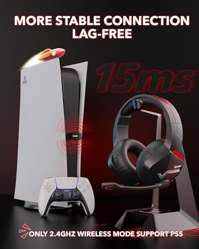 BINNUNE 2.4GHz Wireless Gaming Headset, Bluetooth 5.3 Gaming Headphones with Noise Canceling Mic, 120H Ultra-Long Battery, 50mm Drivers, Multi-Platform for PC / PS5 /PS4/ Switch/Mobile, Red