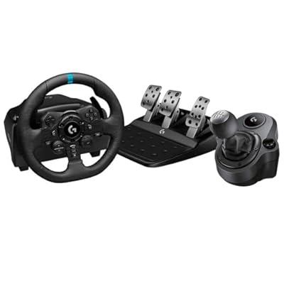 Logitech G Logitech G923 Racing Wheel and Pedals + Driving Force Shifter Bundle – Real Leather, For PS5, PS4, PC, Mac – Black (Renewed)