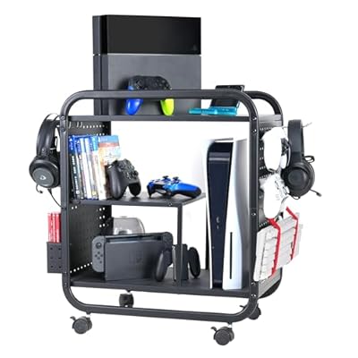 PLKOW Video Game Organizer, Rolling Video Game Storage Rack for Xbox/Switch/PS4/PS5 Accessories, Game Consoles Stand Controllers Holder, Perfect Holiday Present (Black)